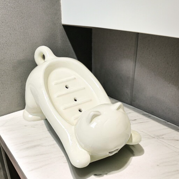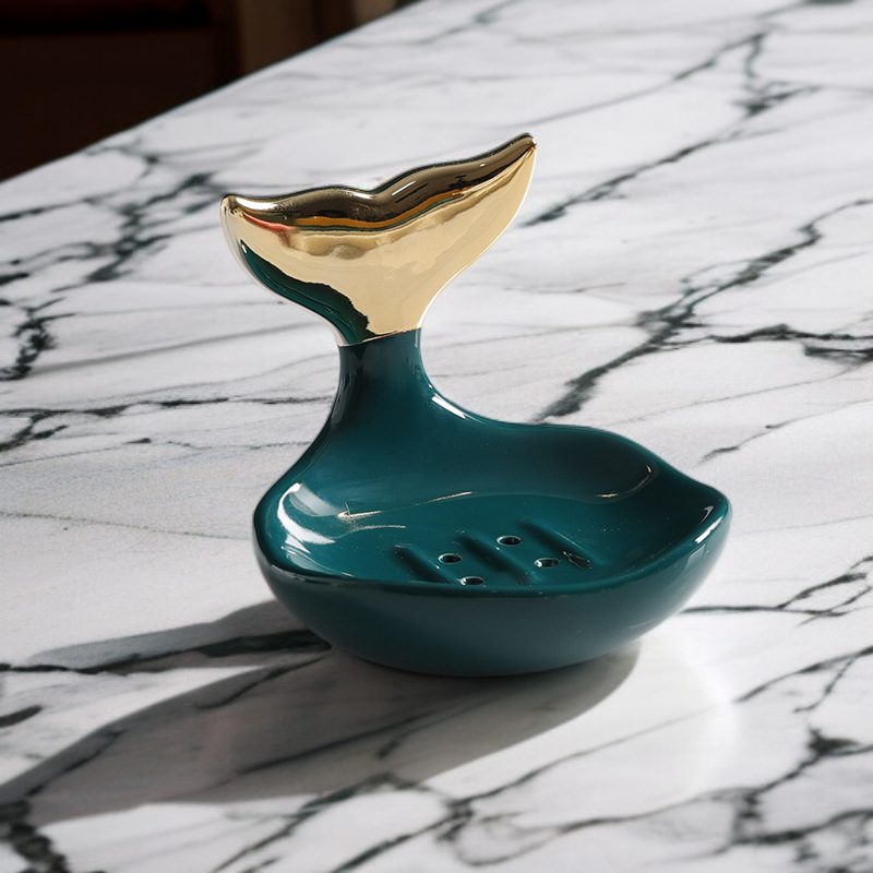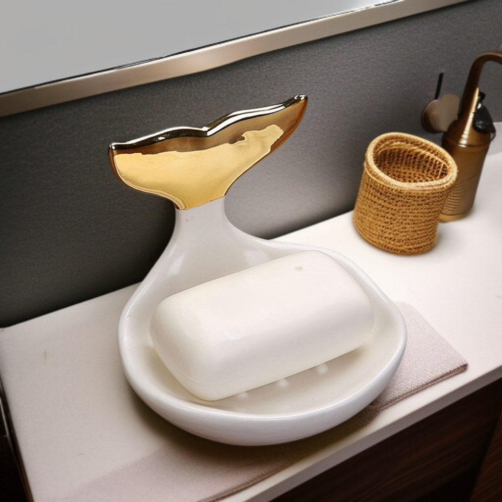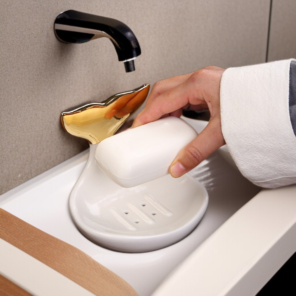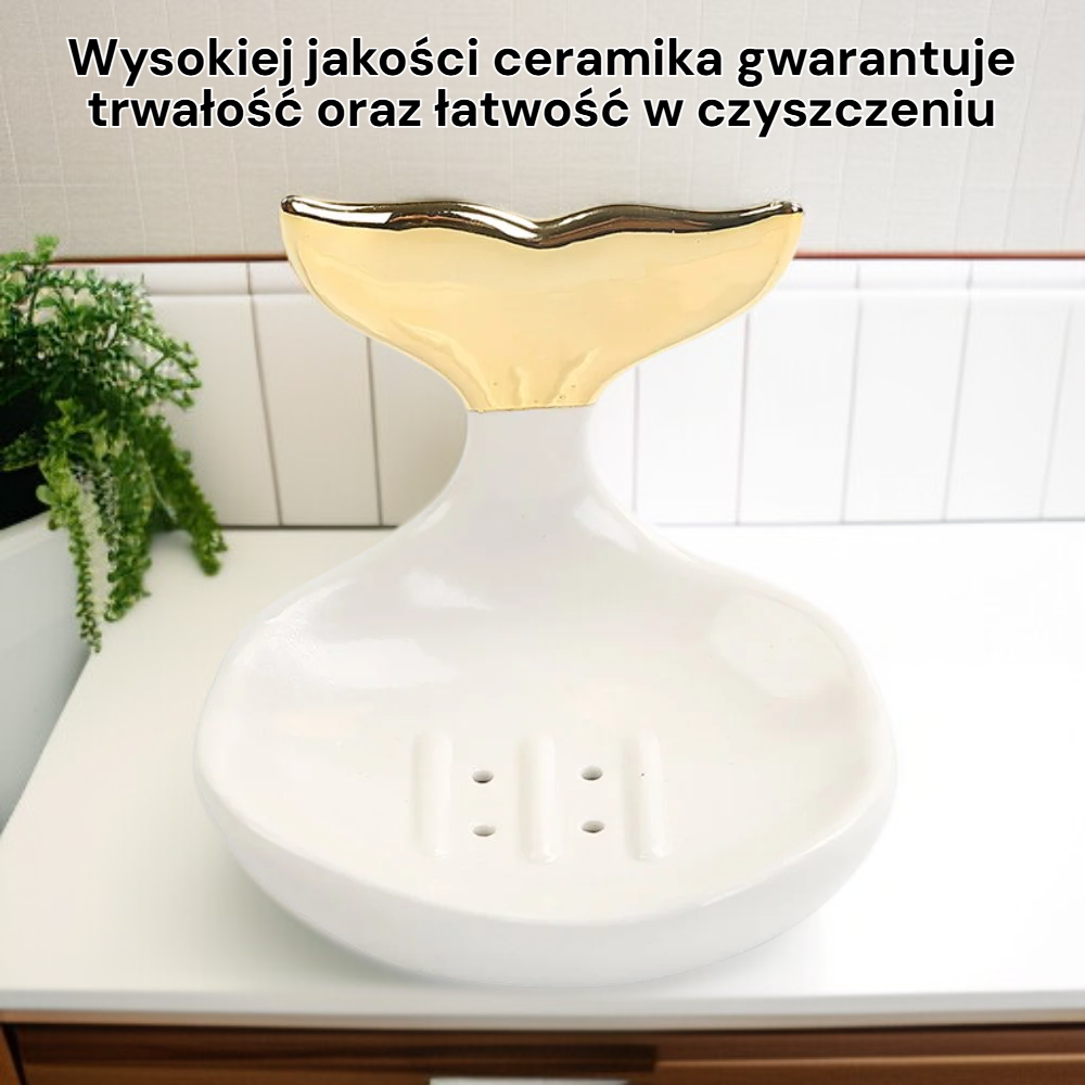 Ceramiczna mydelniczka z odpływem zapewnia higieniczne przechowywanie mydła, dzięki czemu mydło nie rozmięka i dłużej zachowuje świeżość.