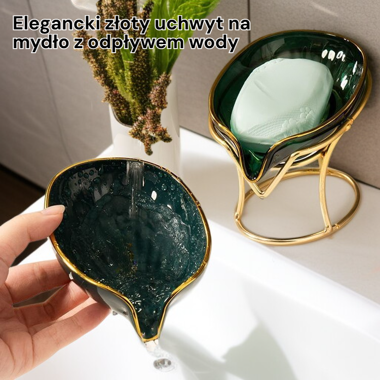 Złoty uchwyt na mydło z odpływem wody, mydelniczka