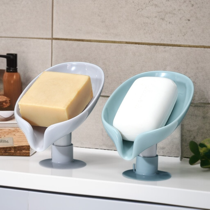 Ulepszony stojak na mydło w kształcie liścia z przyssawką, szybkie odprowadzanie wody