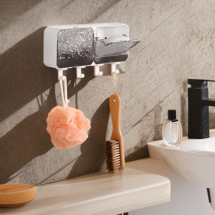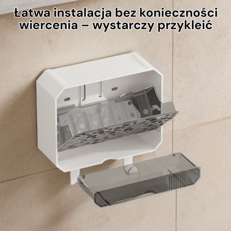 ● Nowoczesna mydelniczka ścienna z falistą pokrywą zapewnia higieniczne przechowywanie mydła, chroniąc je przed wilgocią i zabrudzeniami.