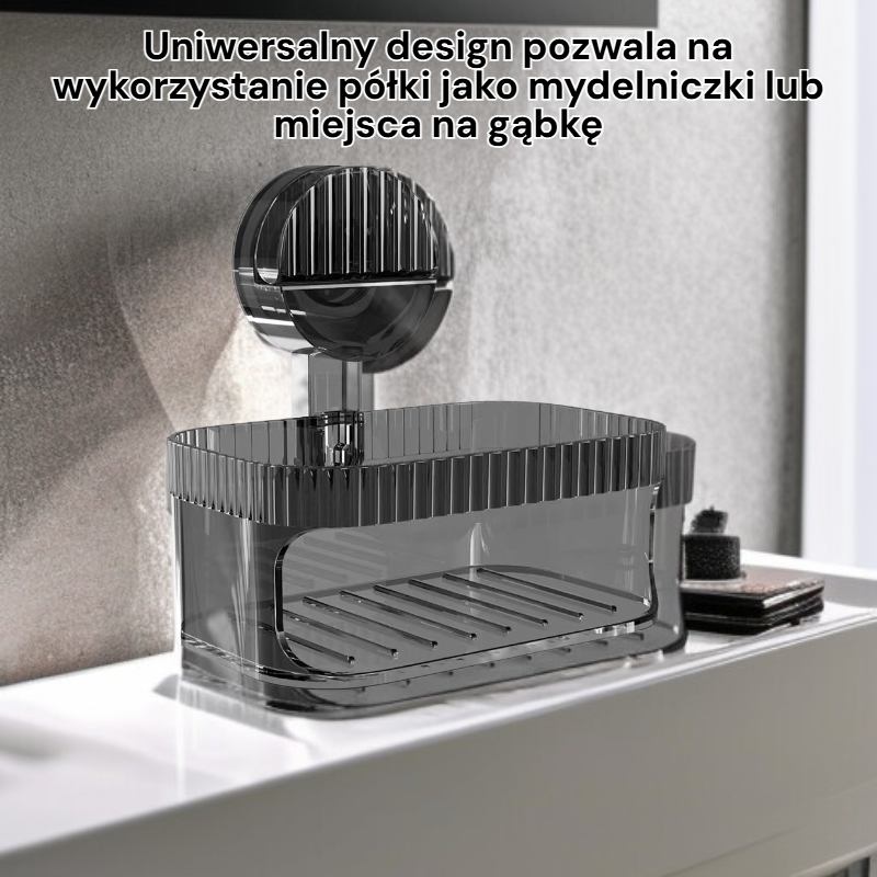 ● Uniwersalny design pozwala na wykorzystanie półki jako mydelniczki lub miejsca na gąbkę, dzięki czemu jest niezwykle funkcjonalna i wszechstronna.