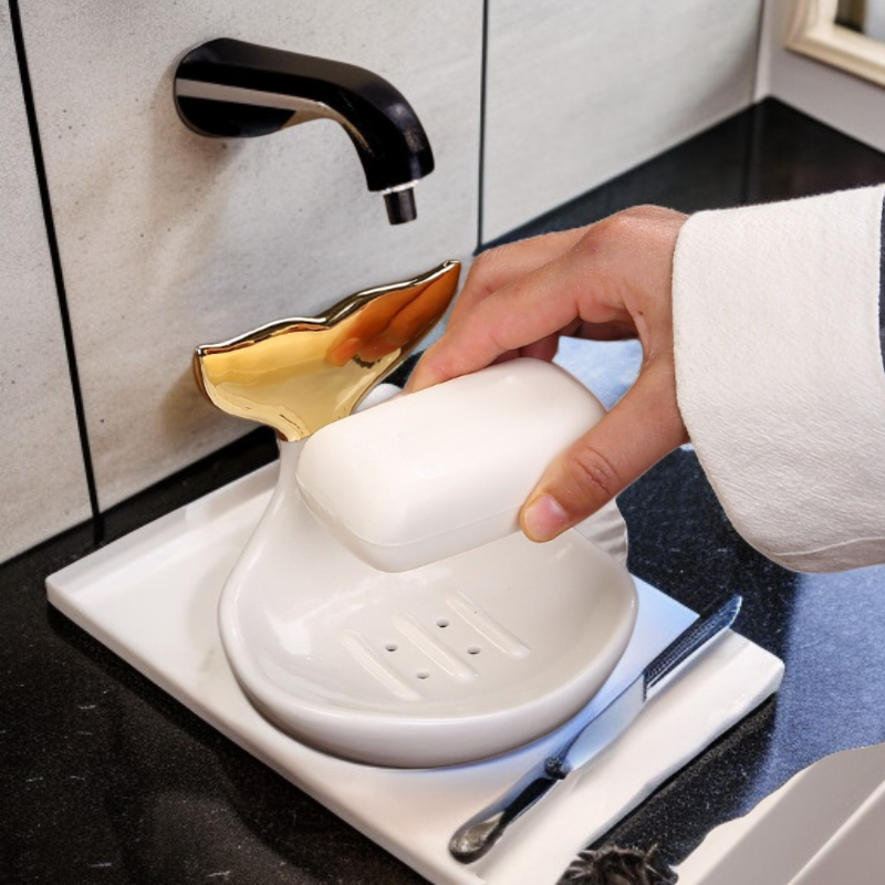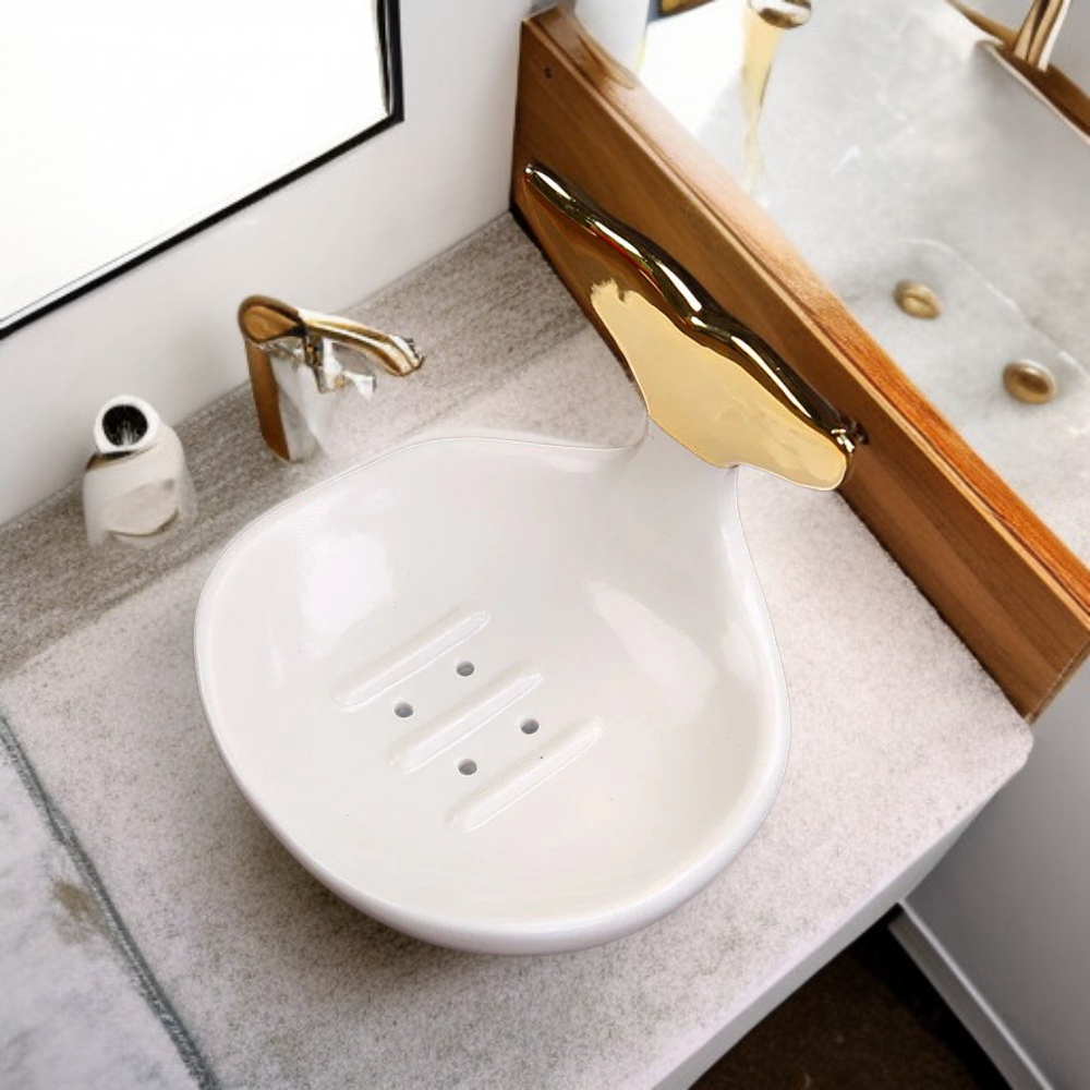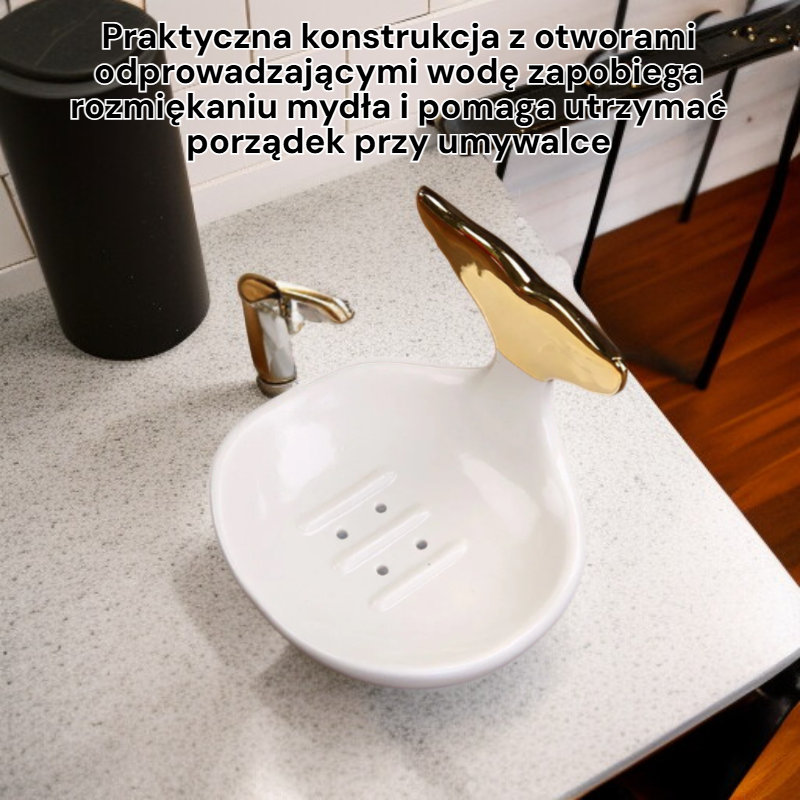 ● Praktyczna konstrukcja z otworami odprowadzającymi wodę zapobiega rozmiękaniu mydła i pomaga utrzymać porządek przy umywalce.