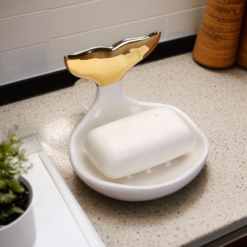 ● Prosta, biała ceramiczna podstawka na mydło doskonale komponuje się z każdym stylem łazienki, dodając jej elegancji i nowoczesnego charakteru.