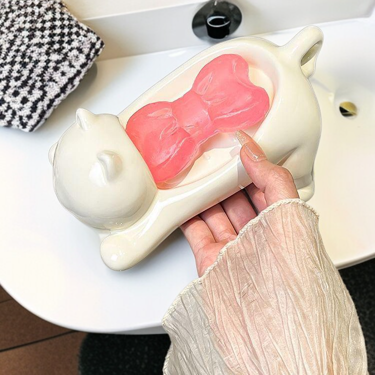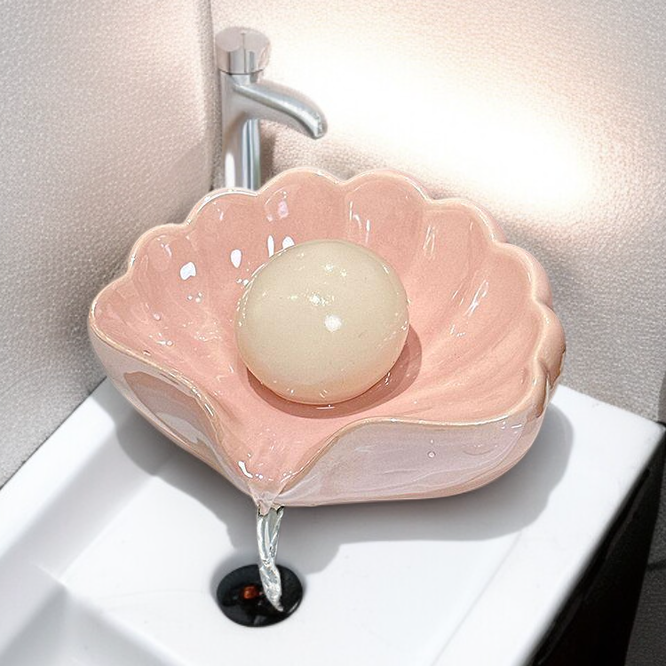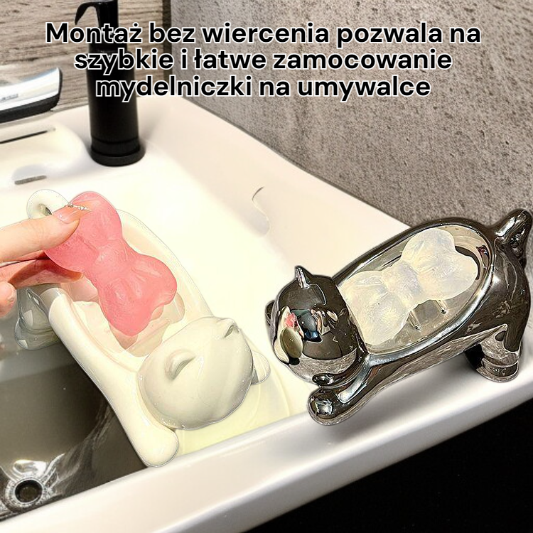 Ceramiczna mydelniczka z odpływem, bez wiercenia, do łazienki na umywalkę